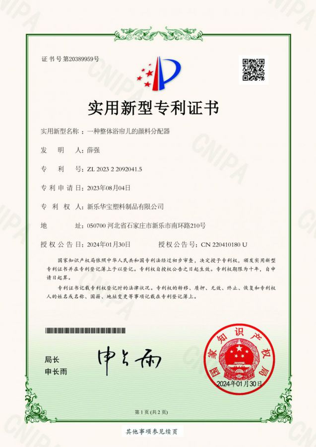 一種整體浴簾的顏料分配器
